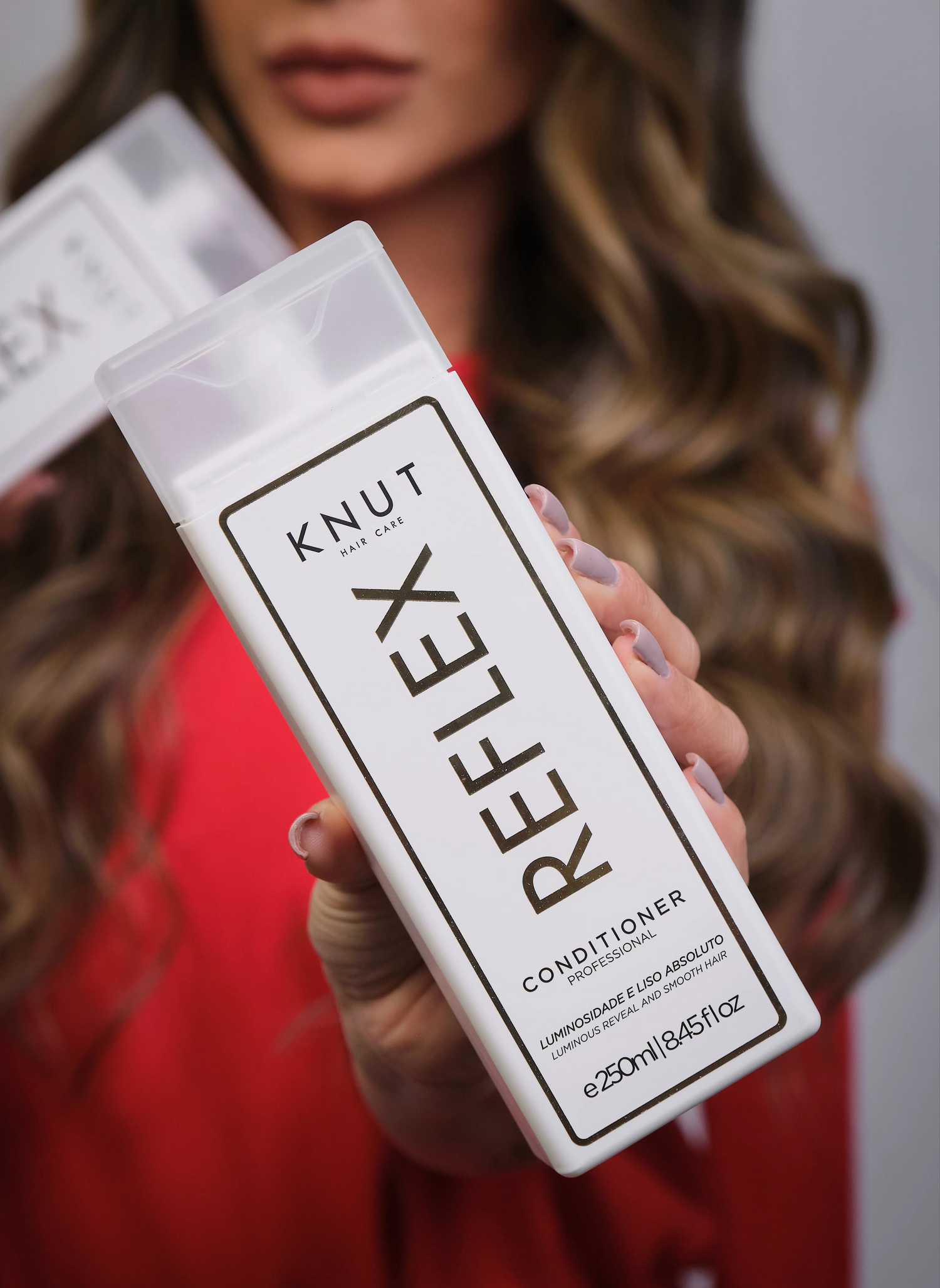 A Linha Reflex da KNUT foi criada para quem busca um cuidado capilar verdadeiramente sofisticado, entregando performance profissional já no primeiro uso. Com uma combinação exclusiva de ativos de alta performance, Reflex trata profundamente enquanto transforma instantaneamente a textura dos fios.