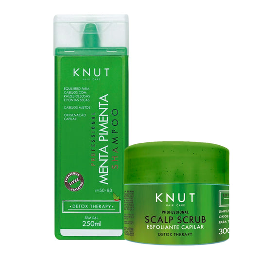 KIT DETOX KNUT Shampoo e Condicionador Menta Pimenta Detox Capilar 250 ml + Scalp Scrub 300g