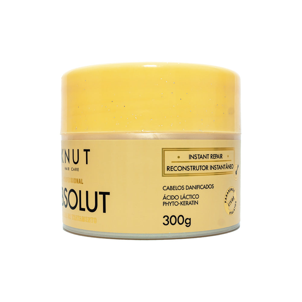A Máscara de tratamento de alta performance KNUT ABSOLUT é ideal para reconstrução instantânea dos cabelos danificados e foi desenvolvida com modernos ativos biotecnológicos. Phyto-Keratin combinado com o poder do Ácido Láctico reconstroem instantaneamente todas as regiões do cabelo, criando uma barreira isolante para conter os nutrientes essenciais no interior do fio e protegendo o cabelo contra novas agressões. Seus ativos foram selecionados para conferir hidratação, maleabilidade, maciez e brilho aos cabelos, resgatando a saúde e resistência dos fios.